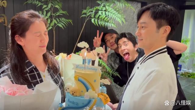张智霖手捧蛋糕为靓靓庆生,夫妻俩还当着刘恺威和王大陆的面上演了甜蜜接吻,表现得大大方方,一点也扭捏,简直甜齁了。