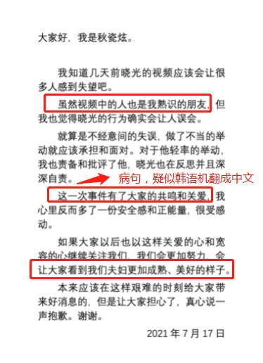 事情发展到这个地步,网友更加替秋瓷炫不值。你自己出轨,引发了婚姻危机和形象危机,伤害了妻子不说,竟然还拉着妻子和你一起道歉,这样的男人实在是太渣了!
