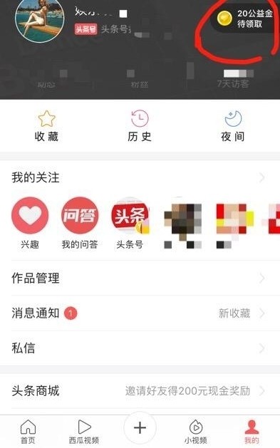具体操作流程:首先进入今日头条我的个人首页顶部区域右上角点击今日阅读25分钟,20公益金待领取。