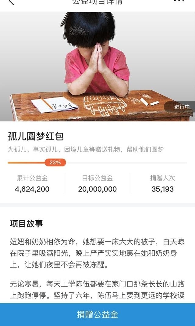 今日头条帮你我实现了这个夙愿。现在,只要每天刷几十分钟的今日头条,就可以参与公益,比如为失去父母的孤儿赠送圆梦礼包,让社会更加关注和关心弱势孤儿,汇聚社会大爱,陪伴他们健康成长,以及帮助他们实现心愿,这一件正能量事,在今日头条这个属于我们每一个人的公益平台就能实现。 比如,假设你读完此篇文章花费25分钟,就可以兑换20个公益金。
