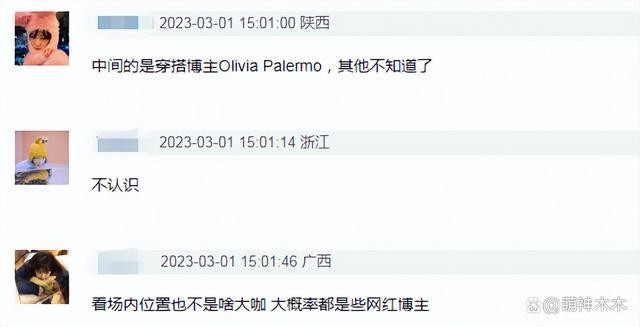 内场座位图,看不出具体的座位排号,周边合影的也都是一些生面孔。有网友称中间有一位是穿搭博主,根据座位来看都不是啥大咖。入场的时候,负责安排的是品牌女装创意总监与大中华区副总裁。