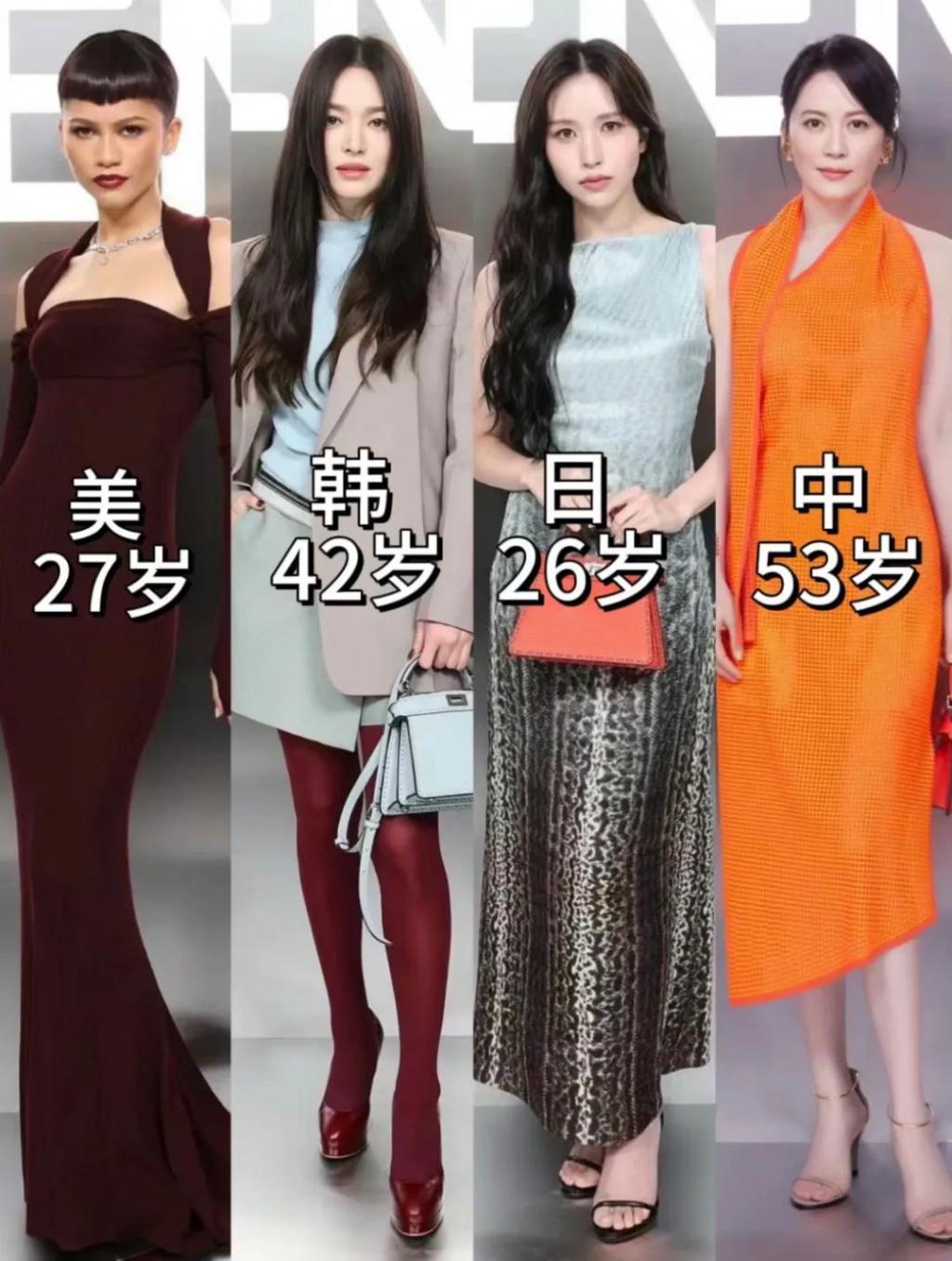 这次秀场图中,有人做了一个不同年龄段的女星对比。