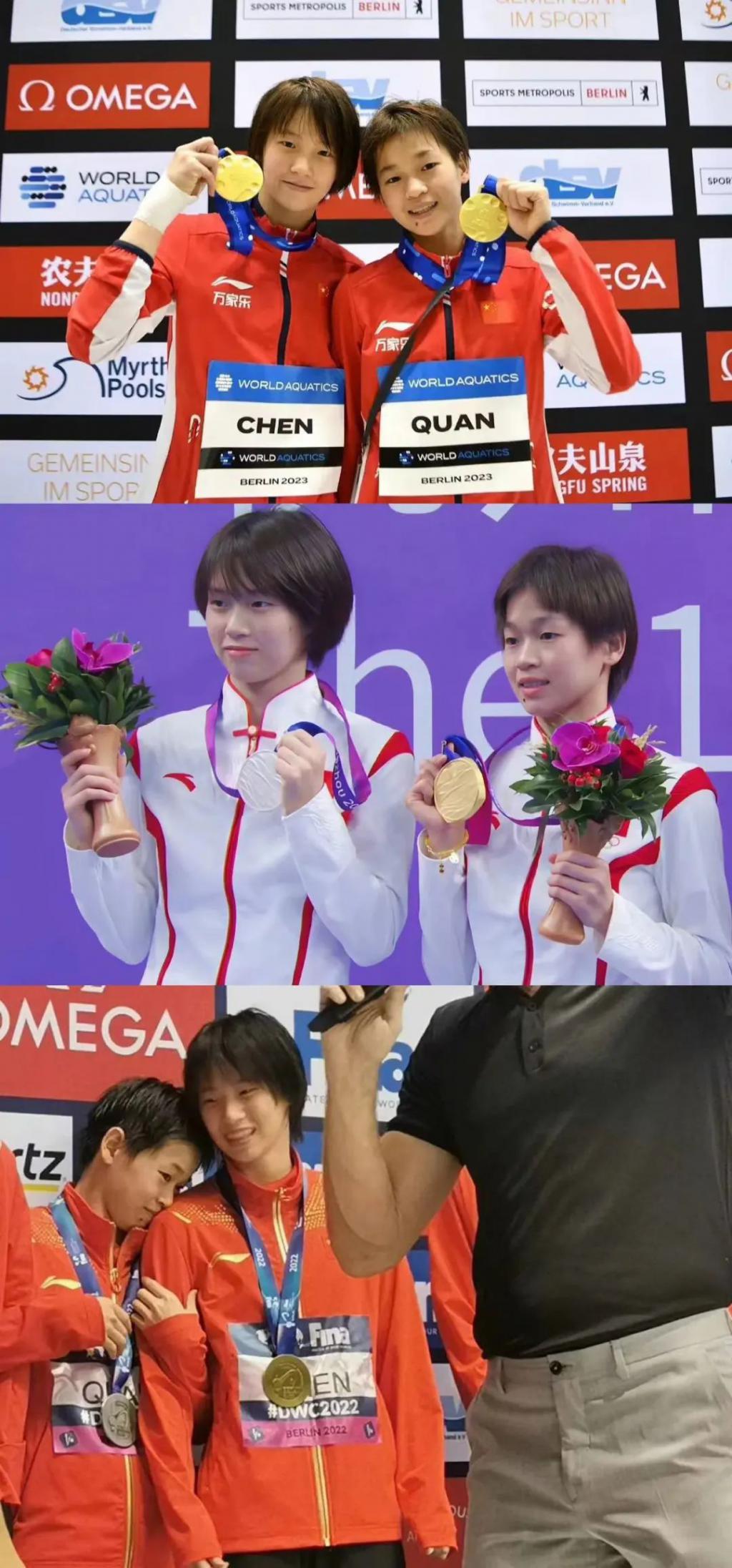 跳水界的大前辈们对这对双子星也很是保护。