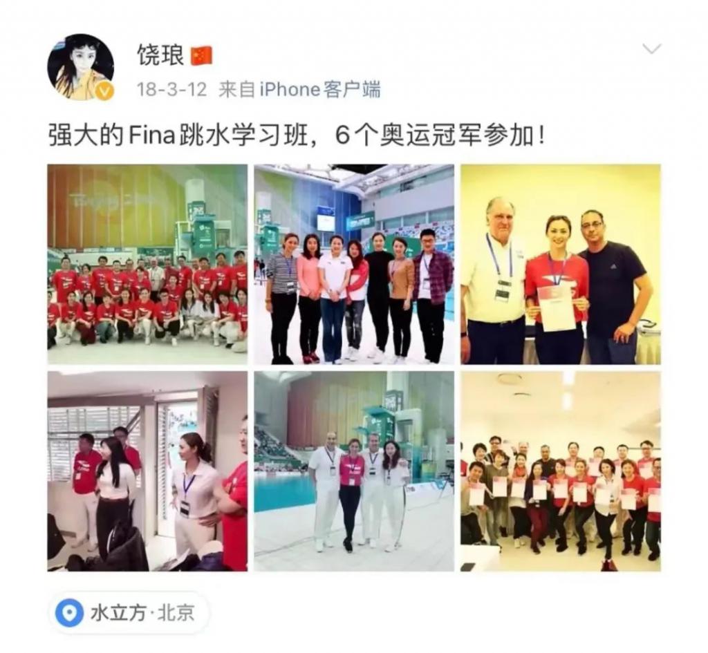 跳水皇后高敏发了一条微博:"想到了自己当年跳水的样子。"