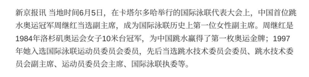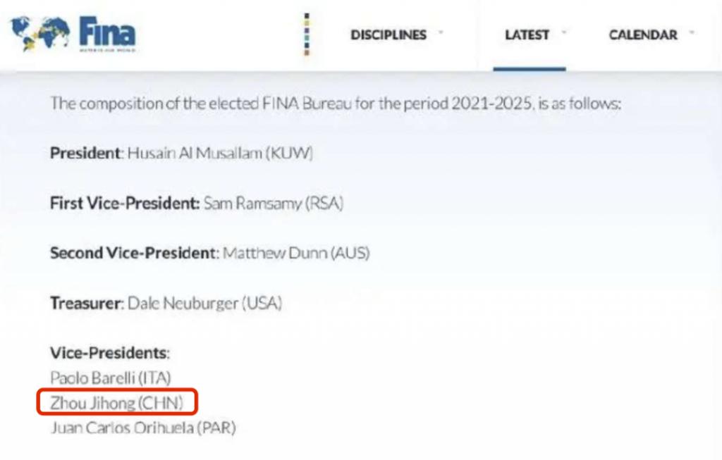 2025年,周继红成为了国际泳联的副主席,