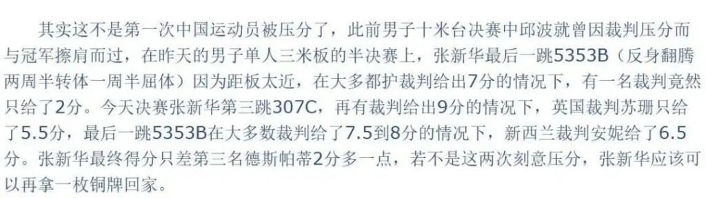 明明动作发挥完美,却被打了低分,导致痛失奖牌。