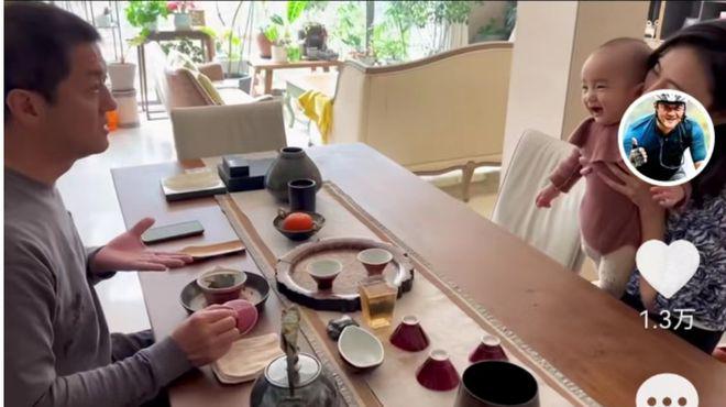 视频中李亚鹏向大家介绍自家的茶叶,海哈金喜则抱着小女儿坐在桌子对面静静听着,期间海哈金喜还不断配合和李亚鹏介绍茶叶,夫妻相处十分自然甜蜜。