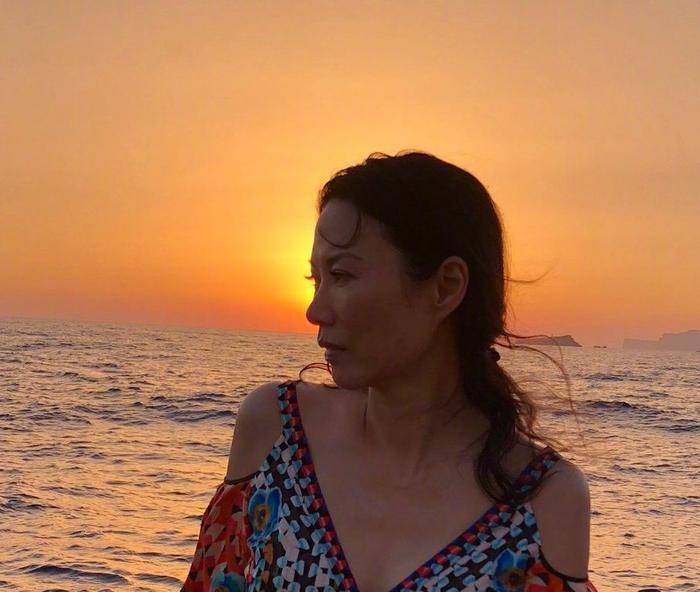 她会像普通人一样想要去在闲暇的时候度假休息,而这张度假照在夕阳的映衬之下也给她增添了一股别样的魅力,并且当时的穿搭也是相当的青春。从一个女强人转型到了文艺女青年。