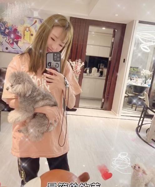 稍早,毕滢在社交账号上分享了一组和宠物狗的自拍合影,无意暴露了房间的内景,引发网友热议。画面中毕滢穿着一件浅粉色的T恤搭配黑色休闲裤,一头黄发披肩,怀里抱着卷毛小泰迪,打出字幕"最简单的美好"。