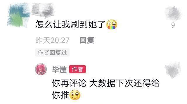 不过也有普通的路人网友留言,抱怨怎么会刷到毕滢的动态,并配上了一个"作呕"的表情,毕滢回复道"你要是再评论,大数据还给你推"。
