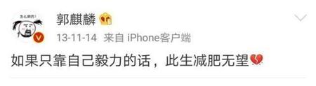 郭麒麟:“如果只靠自己毅力的话,此生减肥无望。”这句话道破了减肥的秘籍,减肥不能单单靠意志力,那样的减肥是痛苦而且难熬的,只有把减肥当作兴趣的人,当作自己生活的一部分的人,才能够长久的坚持下来。