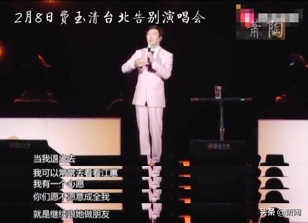 在大年初四的台北告别演唱会上,费玉清再次挑起江蕙话题,他先说“当我退出去,我可以常常去看看江蕙”,然后停下来等观众的反应,见观众的反应并不太强烈,他接着说“我有一个心愿,你们愿不愿意成全我”,这句话总算把观众的情绪点燃了。见气氛起来了,他话锋一转,丢出一个大包袱“就是继续跟她做朋友”,敢情他在逗大家玩,可台北的观众并不介意,反而是哄堂大笑,为他鼓掌喝彩。