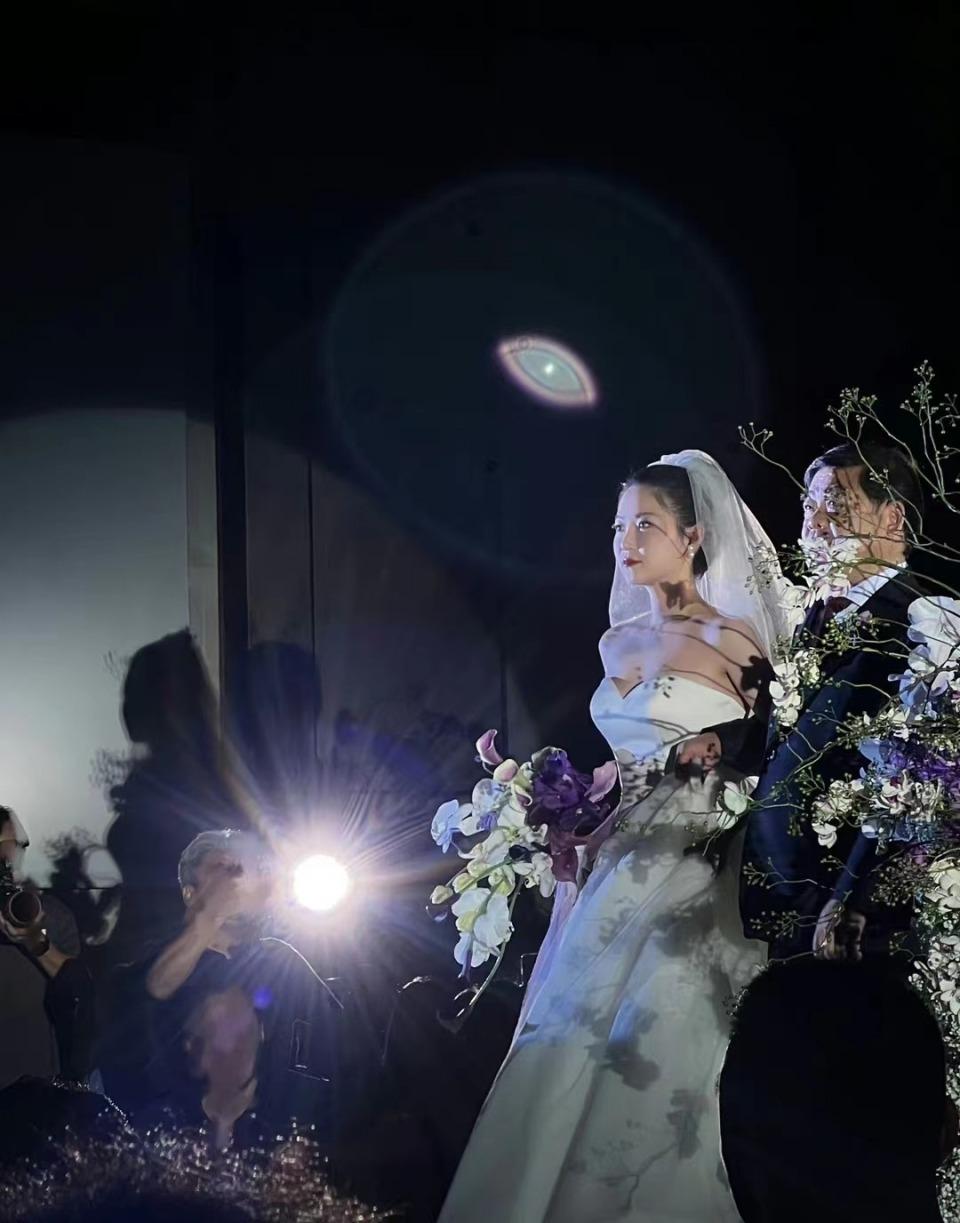 除此之外,林珊珊还晒出婚礼现场照,新娘穿着洁白的婚纱,在父亲的陪伴下一步步向前,坚定的奔向爱情。虽然新娘不是娱乐圈人士,但五官十分大气。