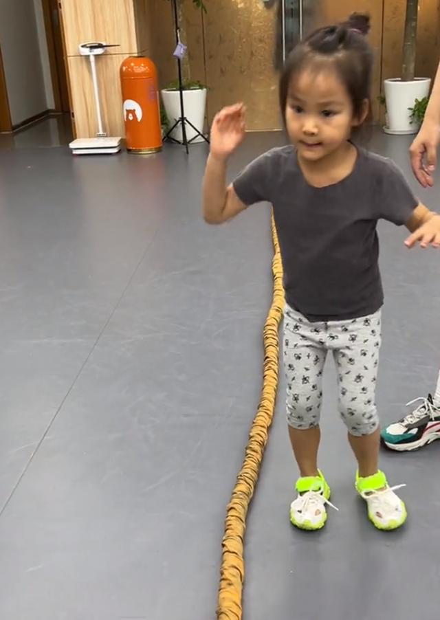 她在教练的指导下,运球、跳大绳,认真的模样可爱极了。4岁就那么爱运动,实在难得,难怪丁子峻都被她激励到。