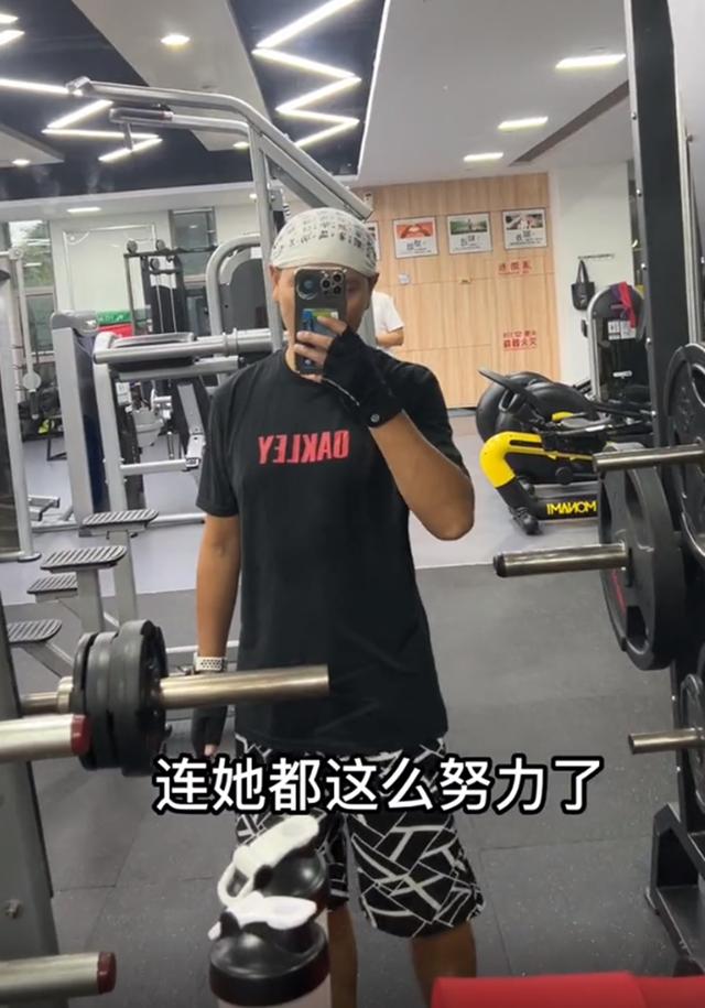 丁子峻对着镜头说道,连她都那么努力,我怎么可以怠慢呢。一说完,丁子峻就拼命踩健身单车。