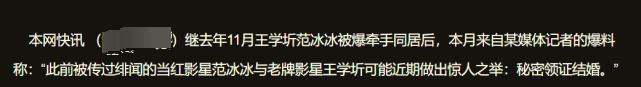 就在范冰冰被外界热议怀孕之前,范冰冰还被传出和王学圻秘密领证结婚的消息。