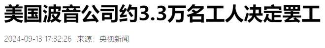 美国波音公司 3.3 万工人罢工。