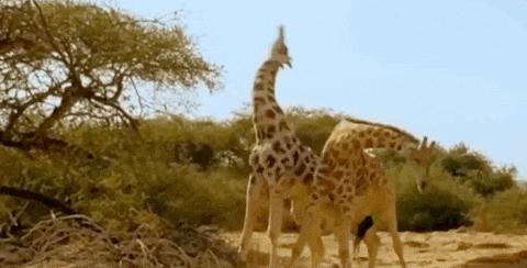 C.《动物世界》资深观众,模仿两头长颈鹿打架。