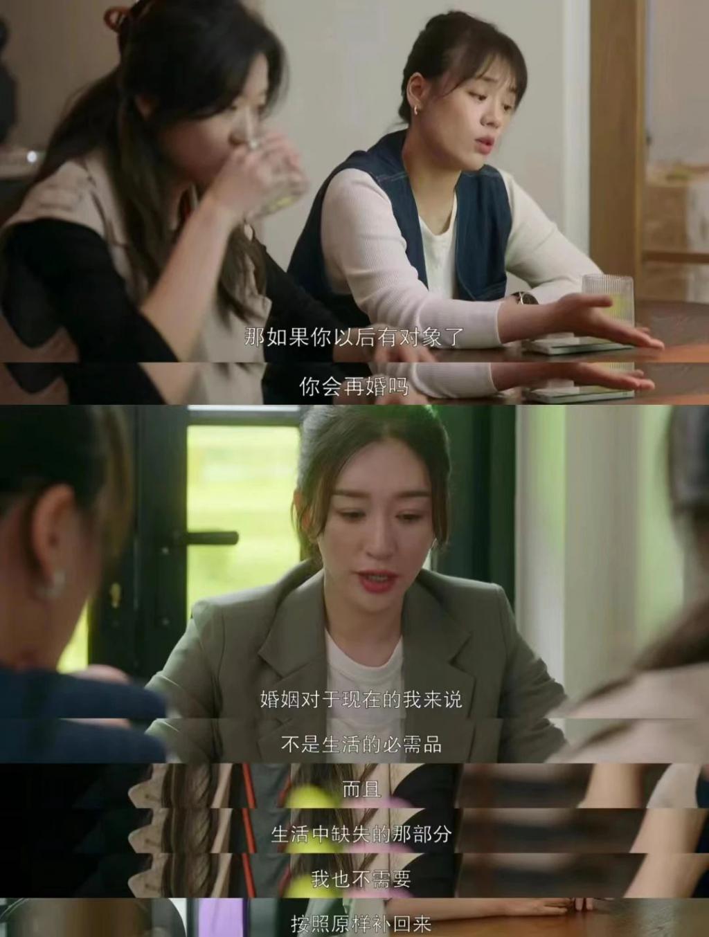 老二孟菀青的搭子式婚姻更是直戳家庭这本难念的经。我们总是喜欢用 " 凑合着过 "、" 都五十岁了还图什么 " 等来形容中年人的婚姻现状,女强人孟菀青的搭子式婚姻也是如此。年轻时不顾父母阻拦毅然嫁给陶大磊,结婚后才发现丈夫并不是自己真正喜欢的样子,丈夫懦弱、缺乏上进心。最后为了女儿努力维持表面的和平,靠自己支撑家庭的重担,殊不知已经貌合神离。