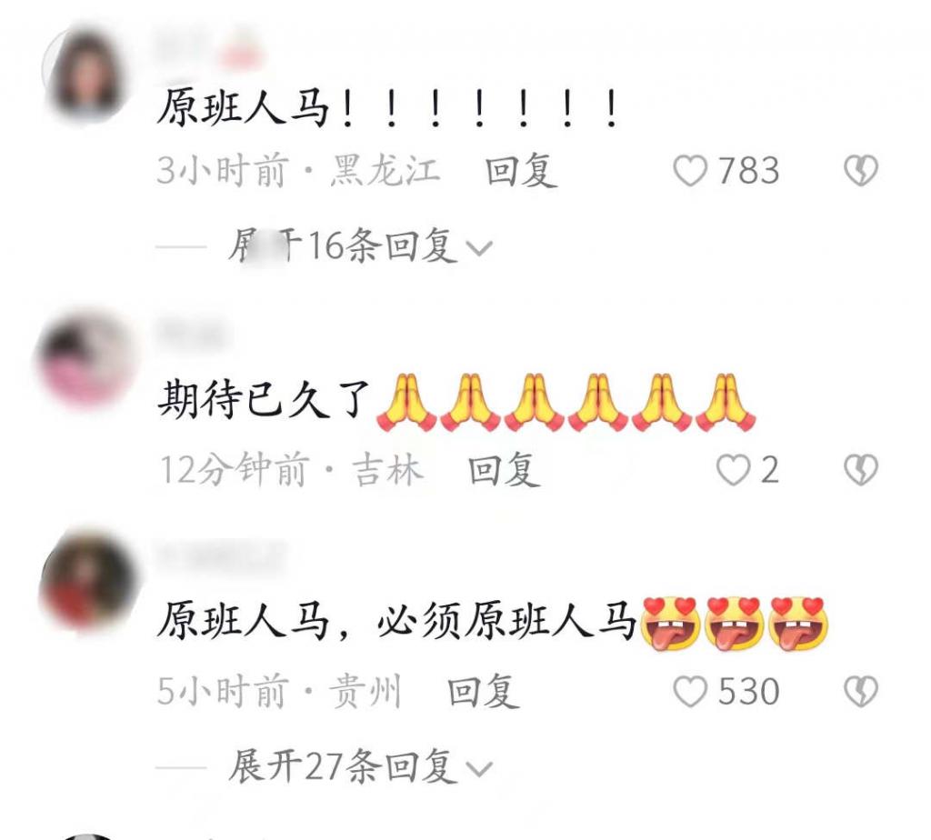 这让不少网友开始期待,也纷纷的在评论区留言说要原班人马!