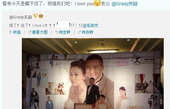关于毛俊杰的老公是谁网上传闻很多,之前传的最凶的是和关喆,后来毛俊杰出来辟谣网上曝出的婚纱照只是剧照,两人当时只是一起拍戏,在微博上开了一个玩笑,现在两人各自都结了婚并有了孩子。