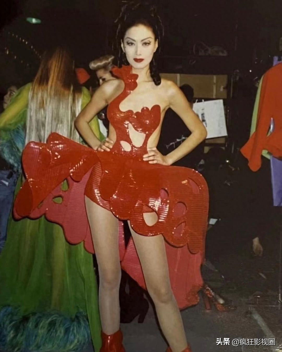 虽然画质有些斑驳,但丝毫不影响美态,照片中的琦琦正在参加走秀,面对镜头,一副娇媚无骨入艳三分的姿态。