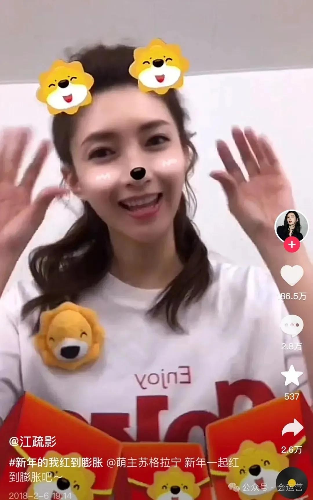 江疏影在2018年年初,就在抖音发了一个手指舞视频,可以说她是比较早入驻抖音的女明星了,她以清新脱俗的美貌和出色的演技赢得了无数观众的喜爱,现如今她抖音的粉丝量高达2001万。
