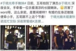 值得注意的是,于晓光已经不是第一次和异性互动亲密被拍了,早在2016年,于晓光就被拍到和女性同学手牵手,他当时对外解释过,这件事也就不了了之。