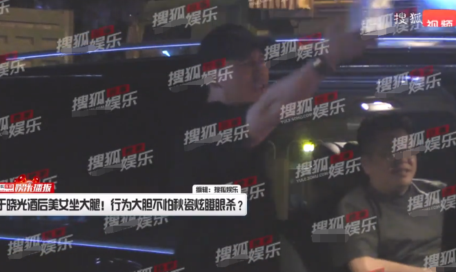 美女喝醉了酒,晃晃悠悠就上了于晓光的车。车内的于晓光直接拉着女生的手让她坐在自己的大腿上,姿势亲密,他还顺势搂上女生的腰,旁边的男性友人看着这一幕笑开了花,似乎对于晓光的行为见怪不怪。