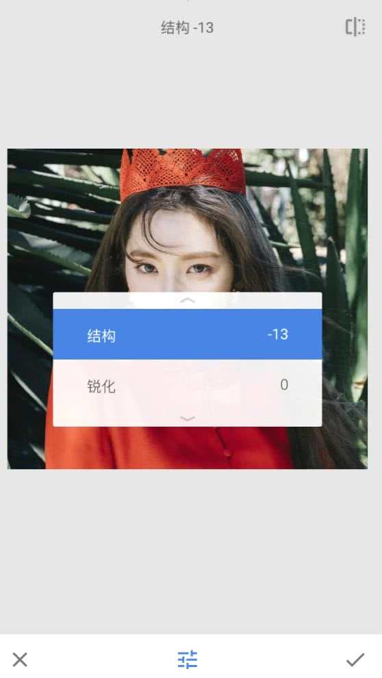 打开工具,点击突出细节,选择“结构”,它的数值会让皮肤看起来更细腻。