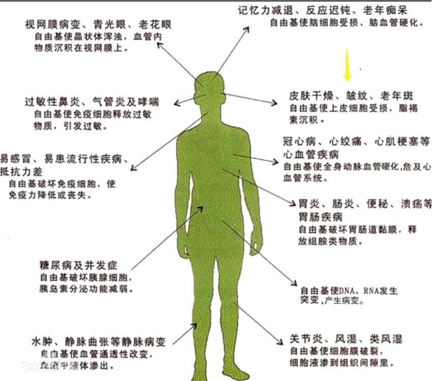 每个人身体里面无时无刻都会有自由基的生成,比如说紫外线照射的时候,就会产生一定量的自由基。而暗黄的原因多半就是因为自由基。