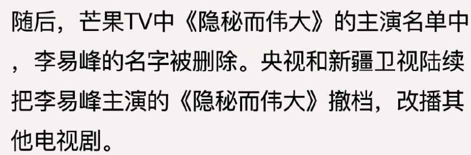《隐秘而伟大》的主演名单中,李易峰三字,已经消失不见。