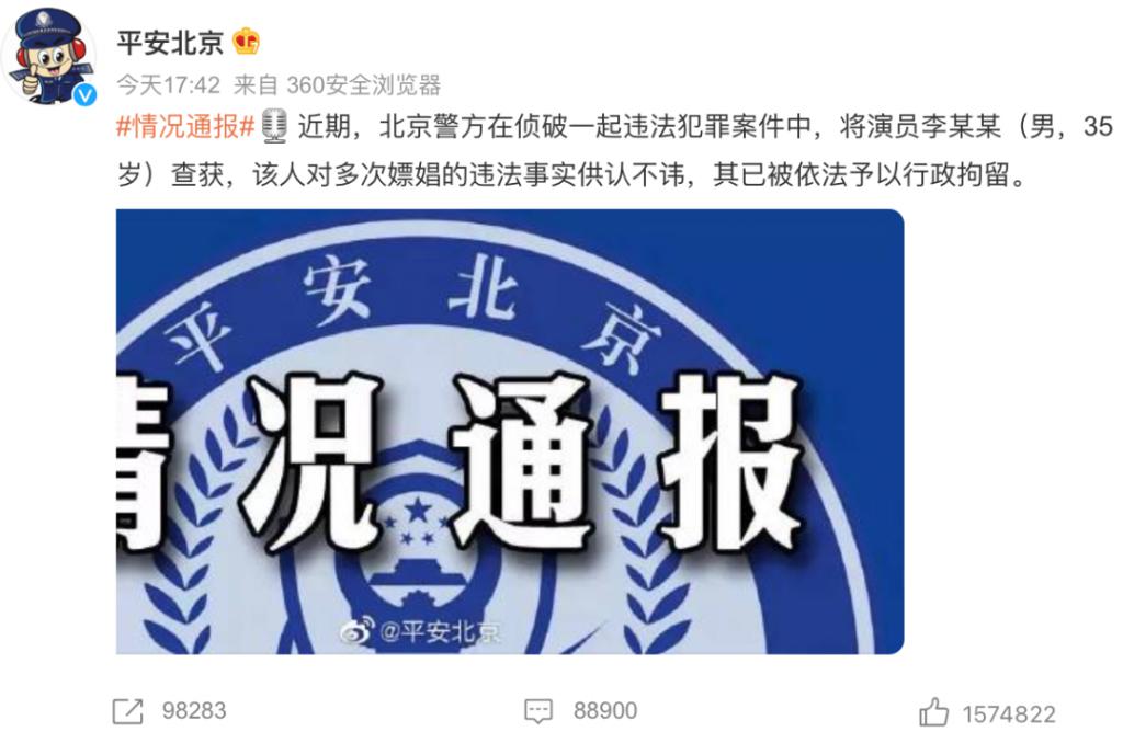 如今,随着官方通报他的多次嫖娼事宜,李易峰星途,到此已尽。