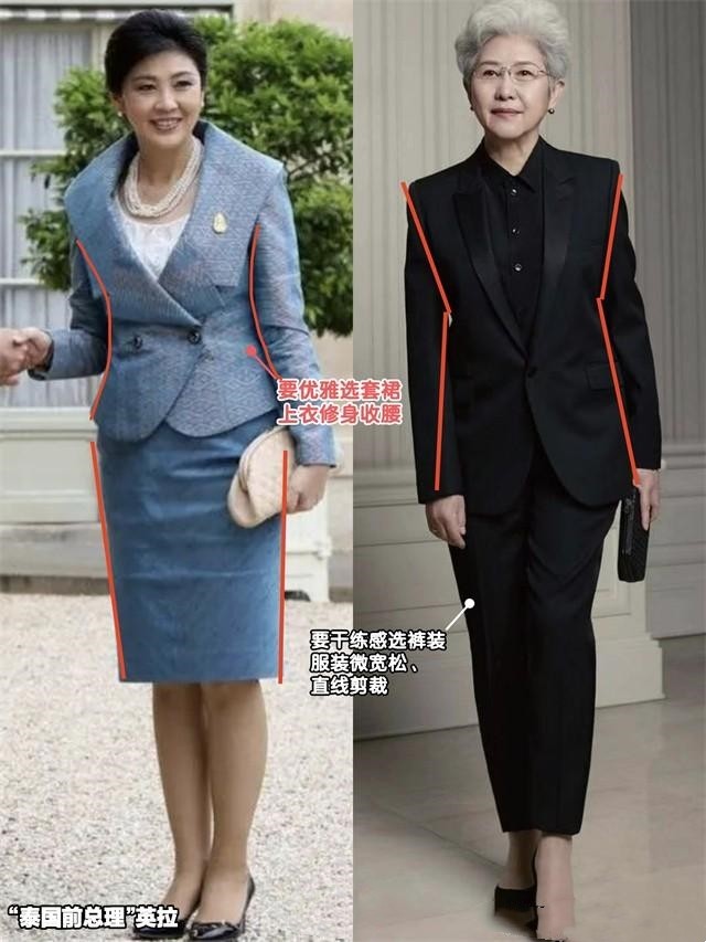 姐妹们可能都觉得上了年纪就该穿宽松的衣服,这个想法可太错了,正肩裁剪的收腰西装配长裙,简直就是我们的制胜法宝。