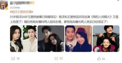 杨洋王楚然恋情曝光,共度四夜后分开避嫌,狗仔透露两人已领证