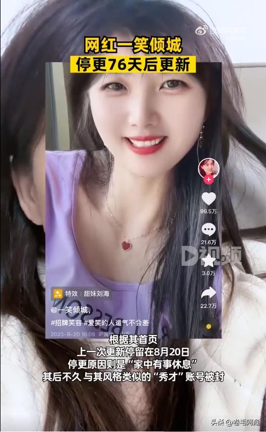 每日经济新闻—《停更76天后!网红“一笑倾城”复更,粉丝已接近1920万!她为啥爆火?》
