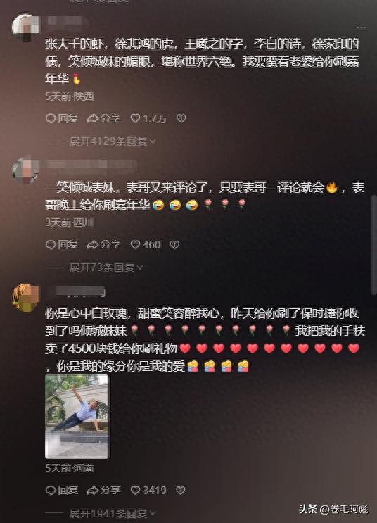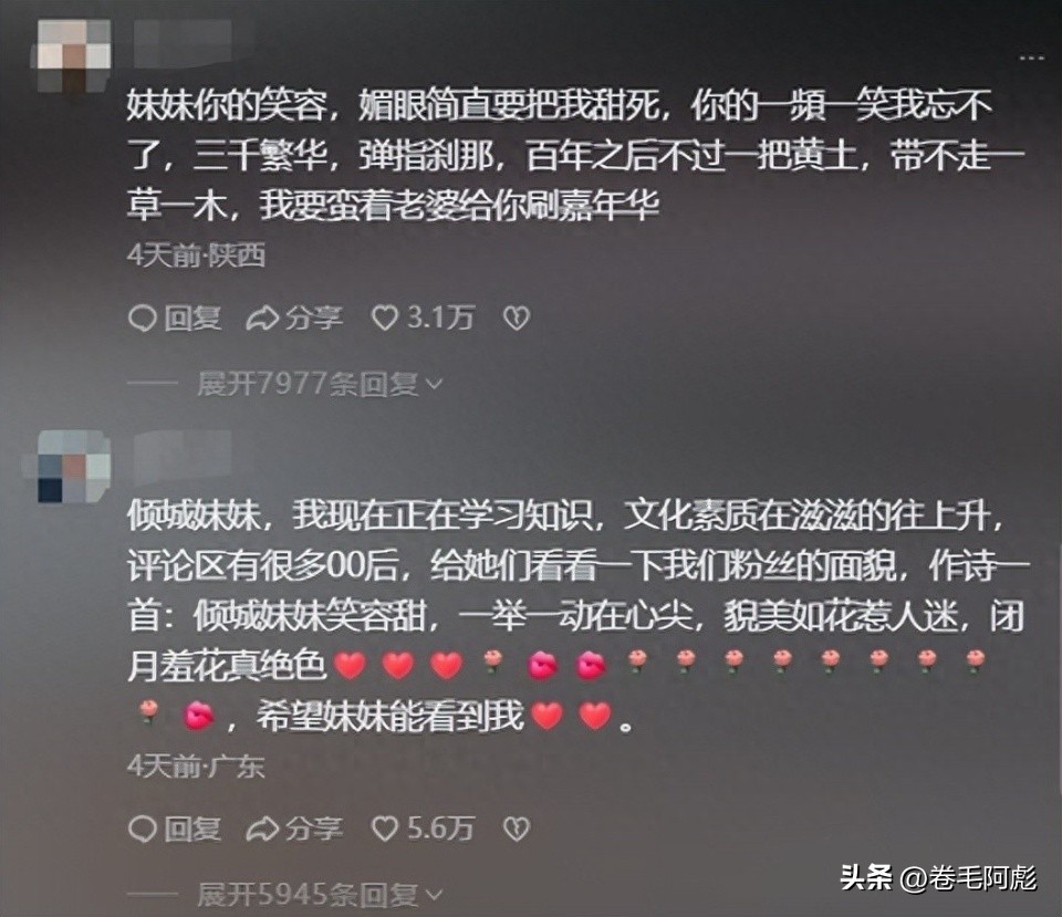 一些十分痴迷“一笑倾城”的叔叔大爷们,还不害臊的在评论区留下了许多土味情话。