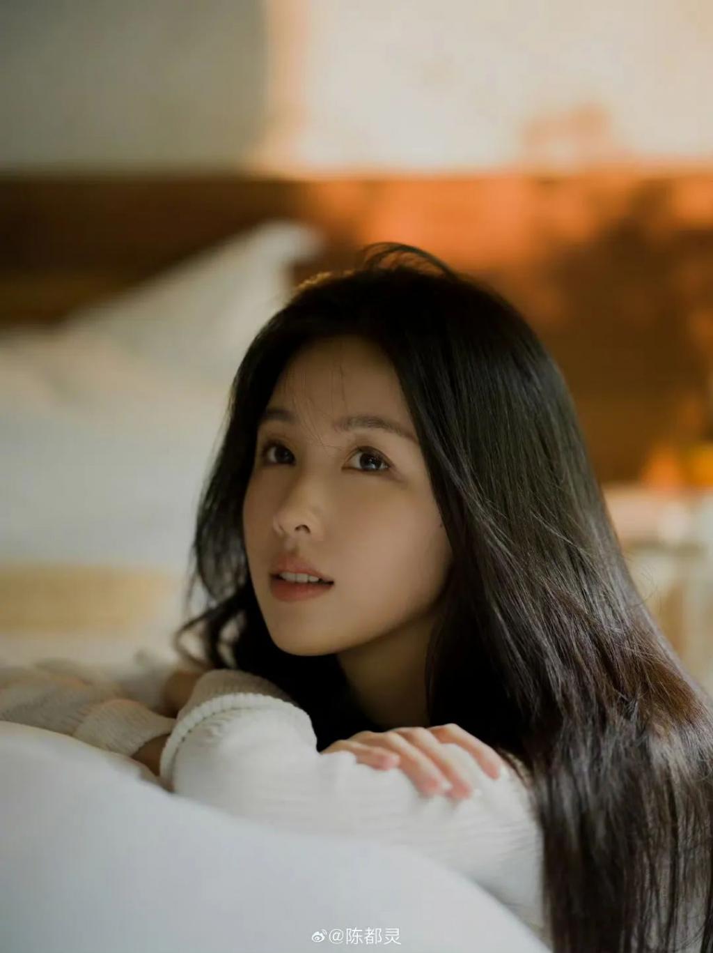 陈都灵是淡颜系的美女,线条流畅的鹅蛋脸和精致小巧的五官让她自内而外透露出一股清冷优雅感。