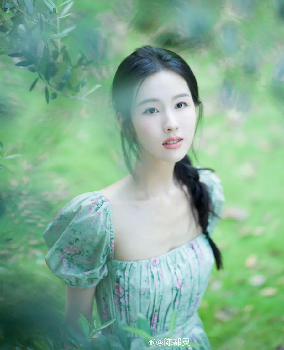 陈都灵最近在微博晒出了自己的清宫造型,淡绿的衣裙搭配古典的妆容,好似在幽静深处的清宫美人。