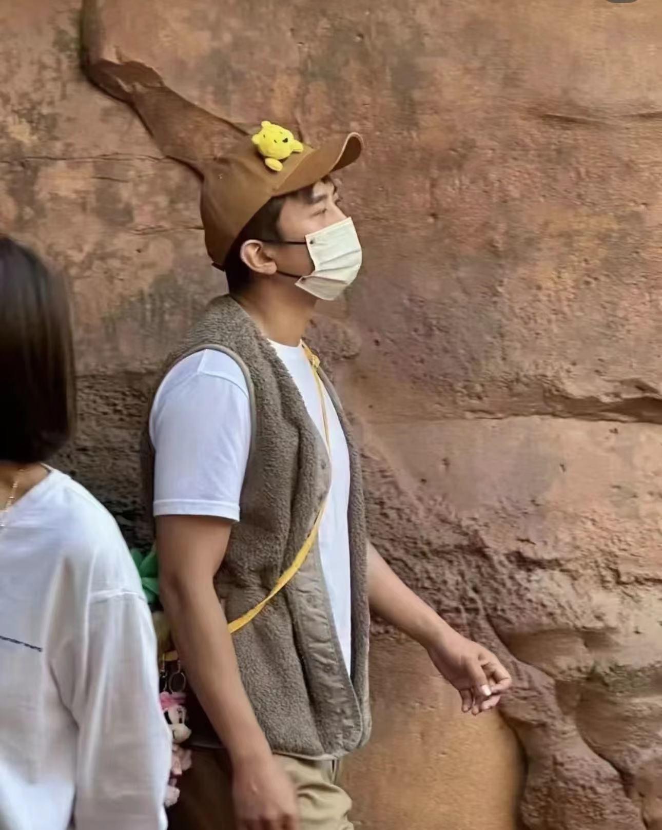 邓超一家现身迪士尼(两夫妻冷都穿两件,其他游客穿短袖)