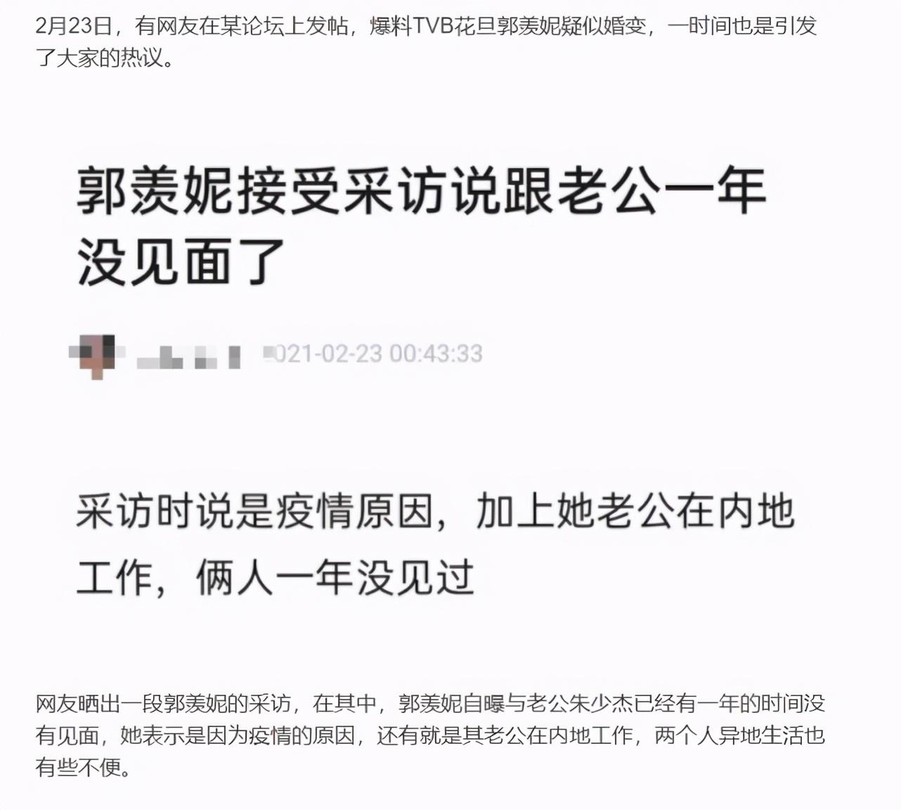 夫妻久未同框,加上郭羡妮状态不佳,外界一度猜测她与朱少杰婚姻出现问题,但郭羡妮本人一直没有出来回应。