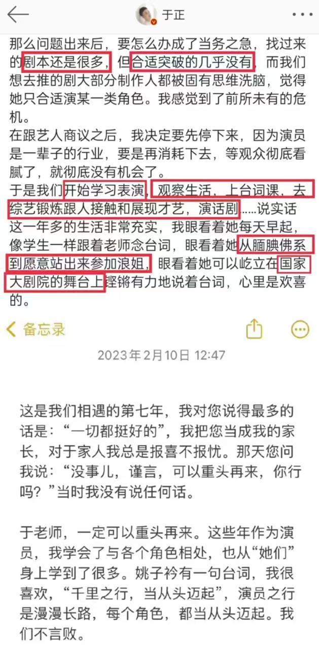 近日,编剧于正在社交平台上发长文谈公司旗下艺人吴谨言长期不进组的事件。
