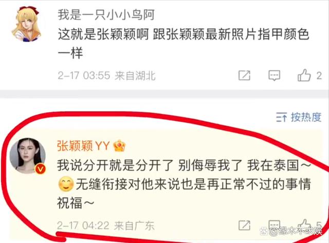 张颖颖称:" 我说分开了就是分开了,无缝衔接对他来说也是再正常不过的事情 "。