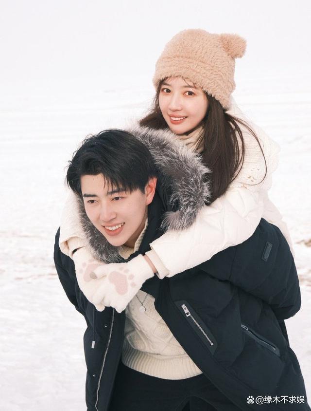 男友发文 " 见彩虹 ",正好呼应秦牛正威所说的 " 阳光下 "。配图中,两人躺在雪地里,男方又背着秦牛正威,浪漫又唯美——