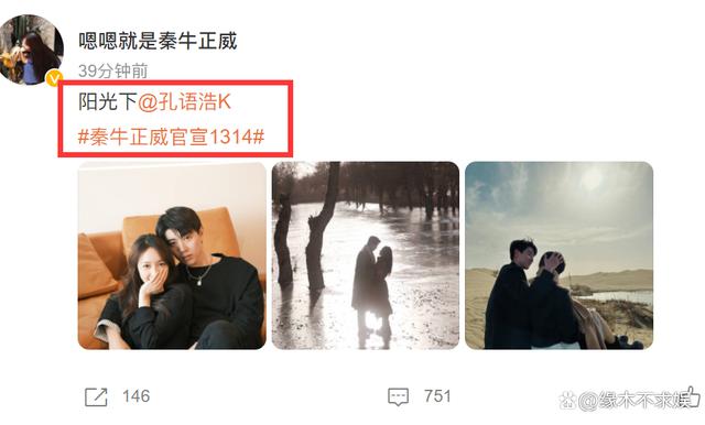 2 月 17 日,女演员秦牛正威也官宣了恋情——
