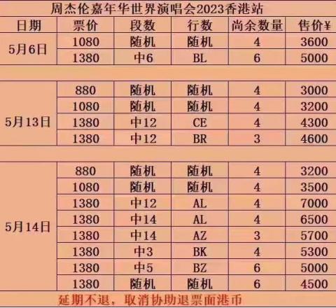 图片来源:黄牛向记者发来的周杰伦 5 月在中国香港地区的演唱会门票价格