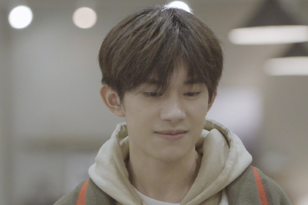 里面搭配白色的卫衣,不仅让整个人看起来更加清爽,而且也让整个人更加具有少年感,选用格子外套作为外套,带有格子的元素设计也让整个造型看起来更加具有层次感,一头小卷毛的易烊千玺真的是看起来超级慈祥。