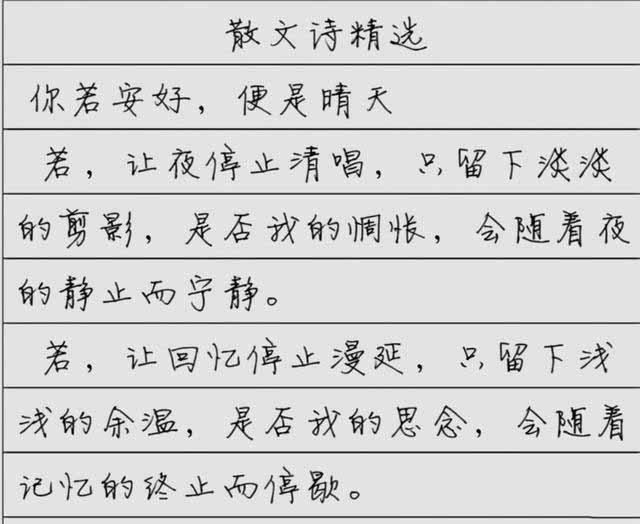 从徐静蕾的硬笔字迹上看,她的硬笔书法很是独到,有个性,而且个性十足,尤其是在造型上,不仅凸显了一种端庄之美,而且还呈现出一种崭新的结构,每一个字,都是一种上宽中窄下宽的结构,在面貌中,给人一种新颖之感,在用笔上,非常考究,而且擅长变化,在行笔的过程中,突出一种格调之美,点画安排十分紧凑,中宫紧收,彼此之间既有明显的揖让,又有明显的前后照应,首尾联系十分紧密,这种感觉,好似每一个字都能够紧紧抱成团,给人一种和谐的格调美,而她的硬笔行书,也非常有看点,尤其是那种洒脱从容之感,跃然纸上,美不胜收。