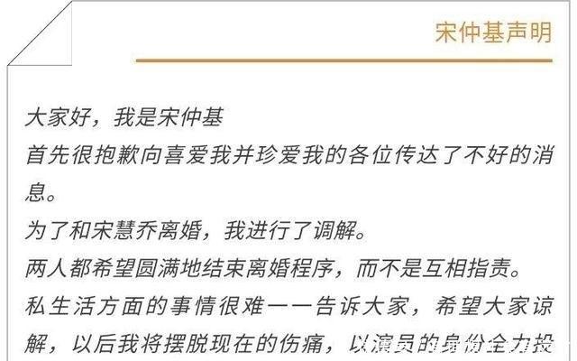 宋仲基离婚声明: