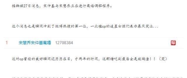 对婚姻的态度本来就缺少安全感,所以时间一长,努力付出的一方就会察觉到另一半并非真心付出,于是婚姻就走到了尽头。我还是觉得当初两个人结婚的时候是相爱的,为什么曾经相爱的要闹成这样彼此伤害呢?还把宋仲基的爸爸扯了出来,据说在韩国那边,宋仲基的爸爸一直都是在热搜第一,来自路人的心痛。你们怎么看这件事?